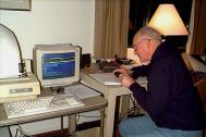 Tom, WA6PFA handles communications traffic for the race from an air-conditioned motel.