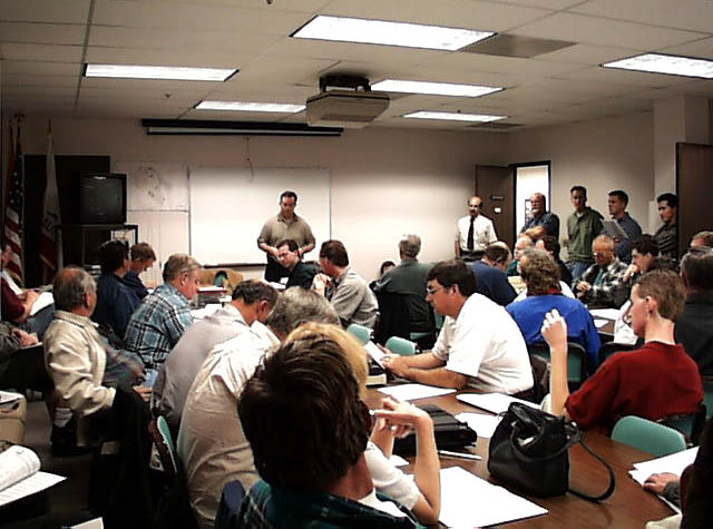 B2V planning meeting. Standing (center left) is Mike Krueger, N6MIK, the B2V