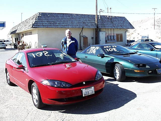 next to his red car in Shoshone. Green car is owned by Ken-W6HHC. |