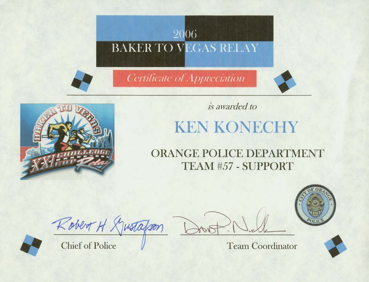radio operator, who helped the OPD running team with the Baker-to-Vegas race, by Chief Bob