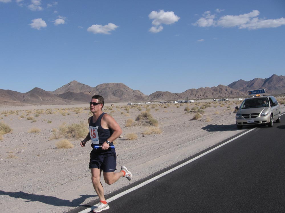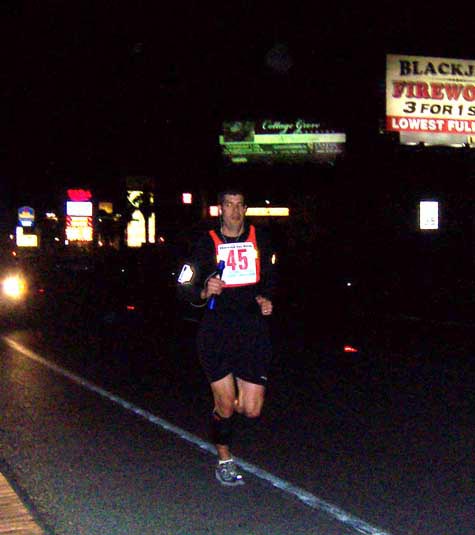 Team #45 runner, Officer Hank Echandi, is running through Pahrump near midnight |