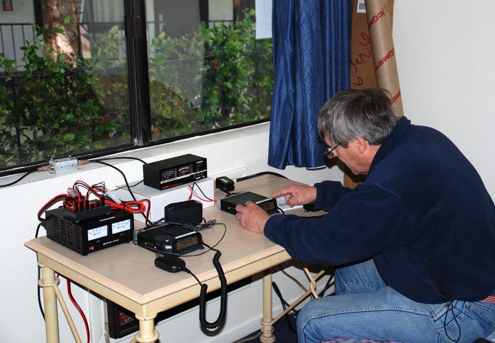 communications center, Bob-AF6C makes final adjustments to the set-up. There were two