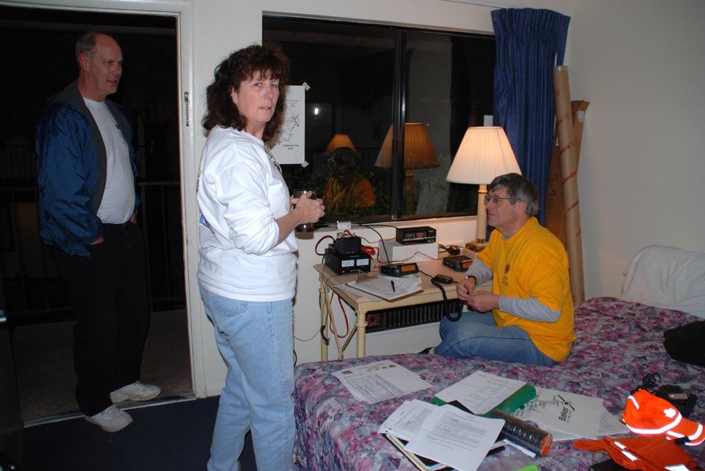 runners and "catchers" were constatntly dropping by to check on status. Debbie