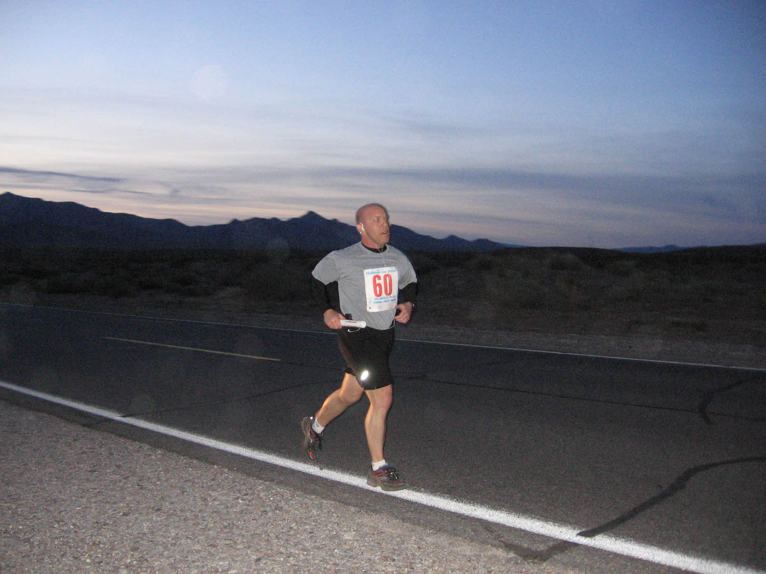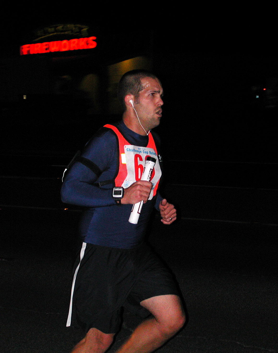 Adam Jevec, is shown running through Pahrump just before midnight. The OPD team continued