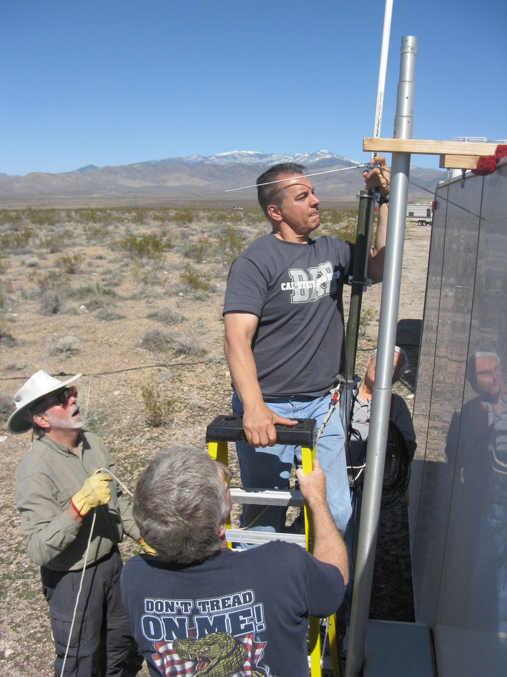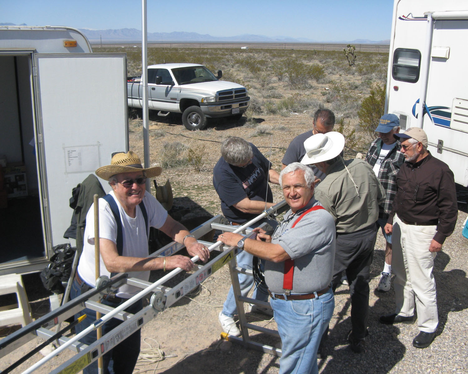 MHz vertical into the air on the mast at Sandy Valley. Jerry-KD6JBL (in white hat) and