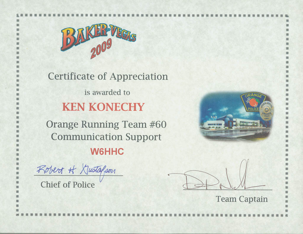 radio operator who helped support the Orange PD running team with the Baker-to-Vegas race,