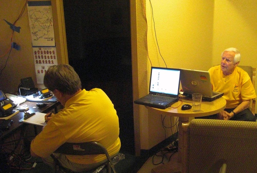 talks with David KG6RWU in front of the APRS set-up to track the progress of the OPD