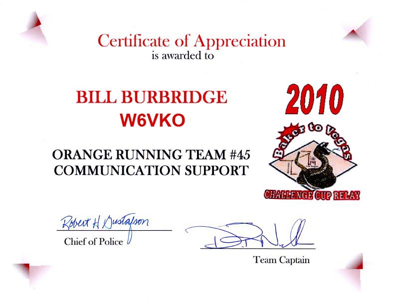 radio operator who helped support the Orange PD running team with the Baker-to-Vegas race,