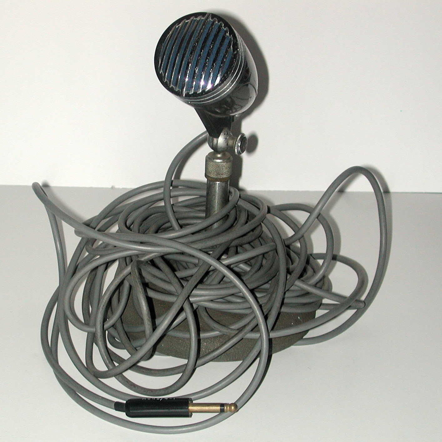 Argonne M-120 bullet style table microphone. includes table stand and long mic cable with 1/4" phone plug on the end. Fair condition; some pitting on chrome.