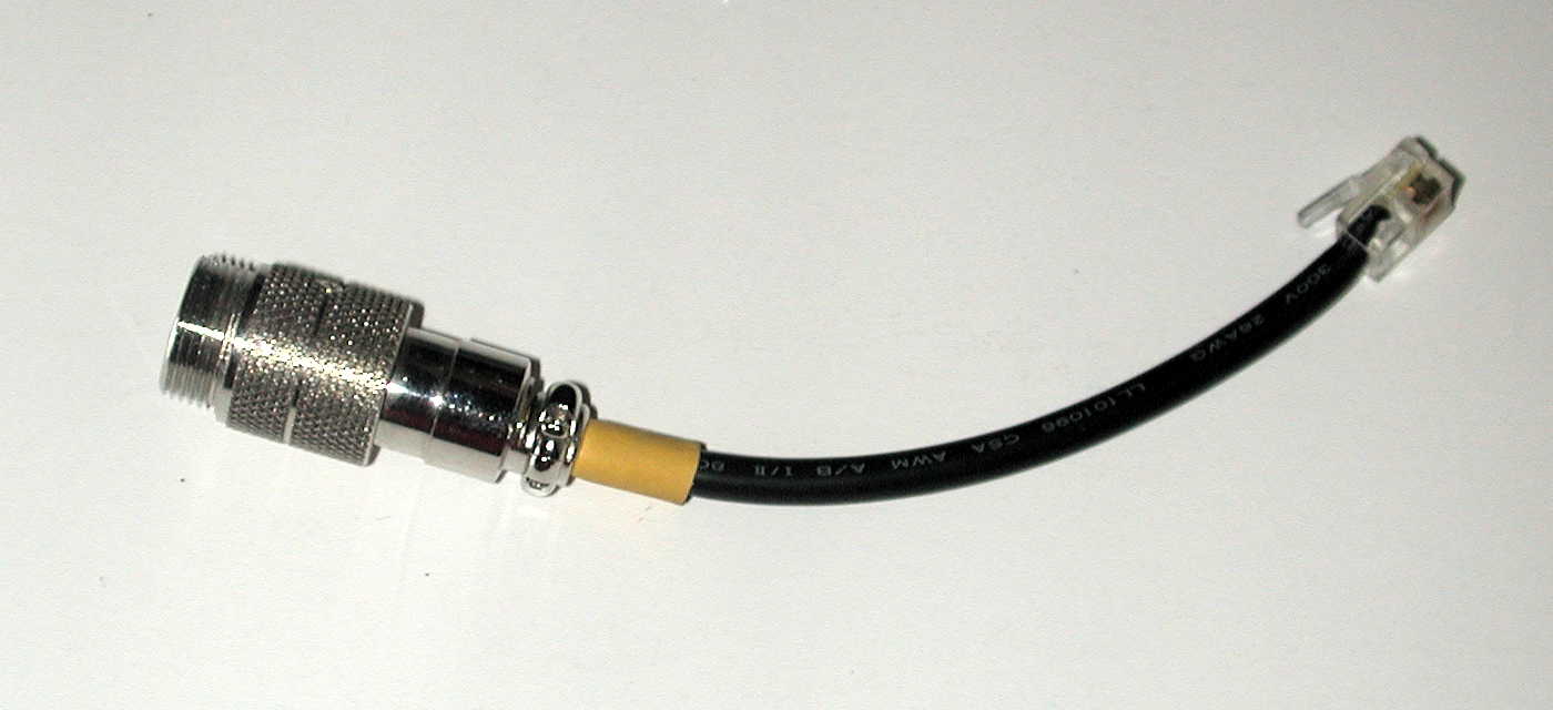 Adapts Microphone Cable to Transceiver, 8-pin round receptacle to 6-pin modular plug. Adapter for Yaesu RJ12 Mic Port (Coded - Yellow). Cable appears unused.