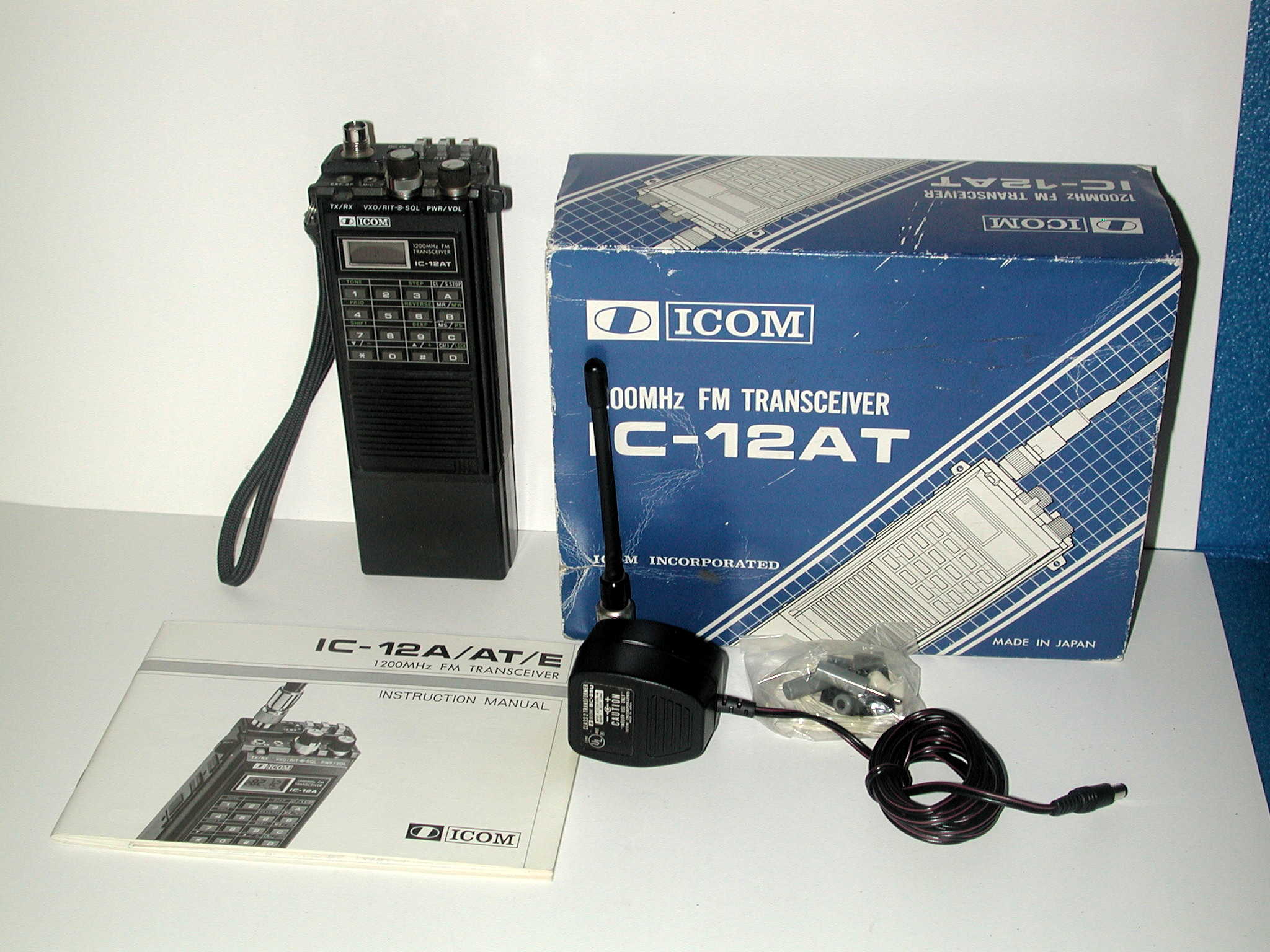 This is the 1.2 GHz version of the IC-02AT handheld transceiver. Includes box, antenna, bag of plugs, manual, BC-25 charger and one ICOM battery. The radio uses the standard BP-x series of ICOM batteries.