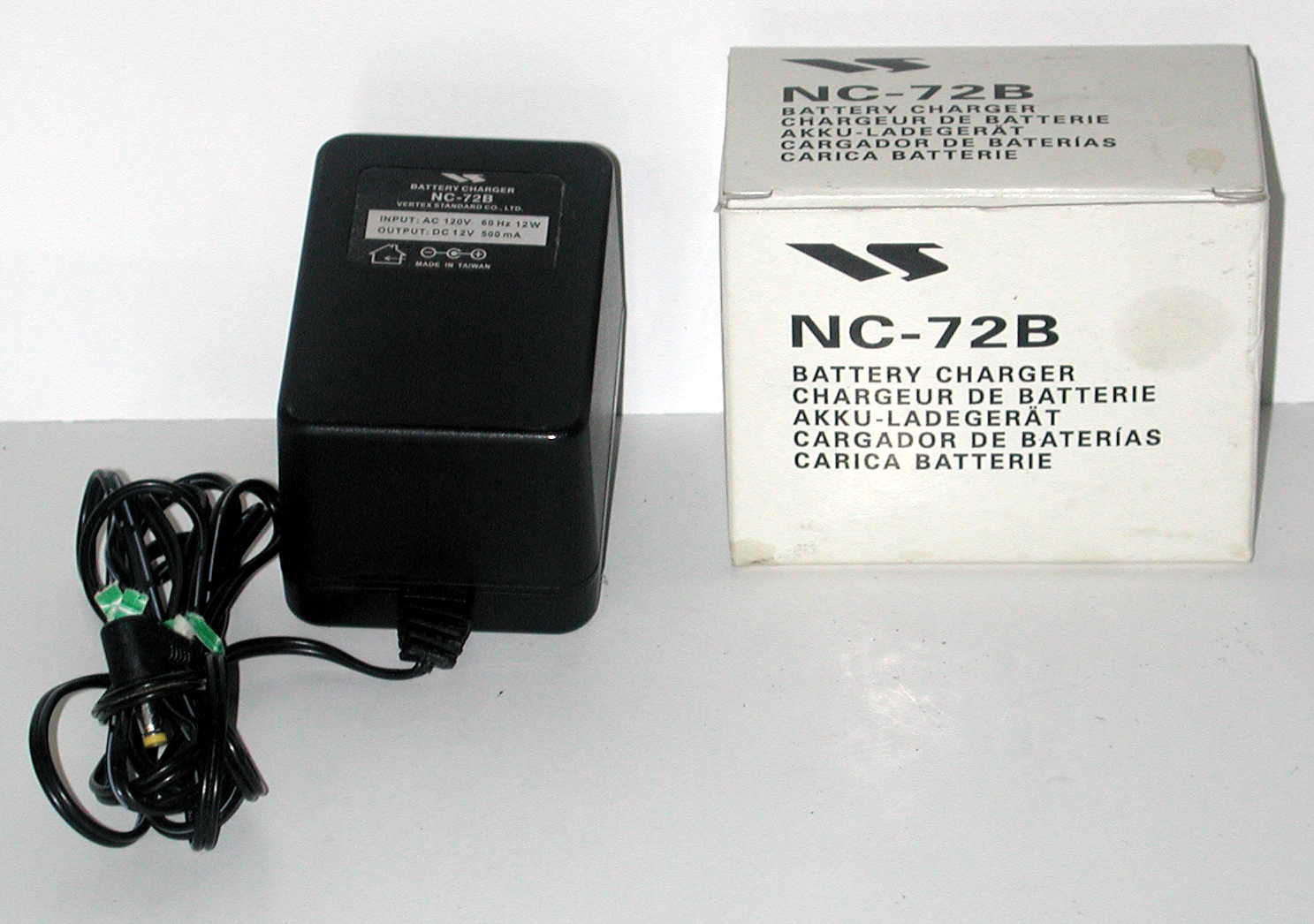 NC-72B Wall Charger. Use with VX-5R, VX-6R, VX-7R radios & CD-15A Cradle that also fits those radios. 12 VDC 500 ma.