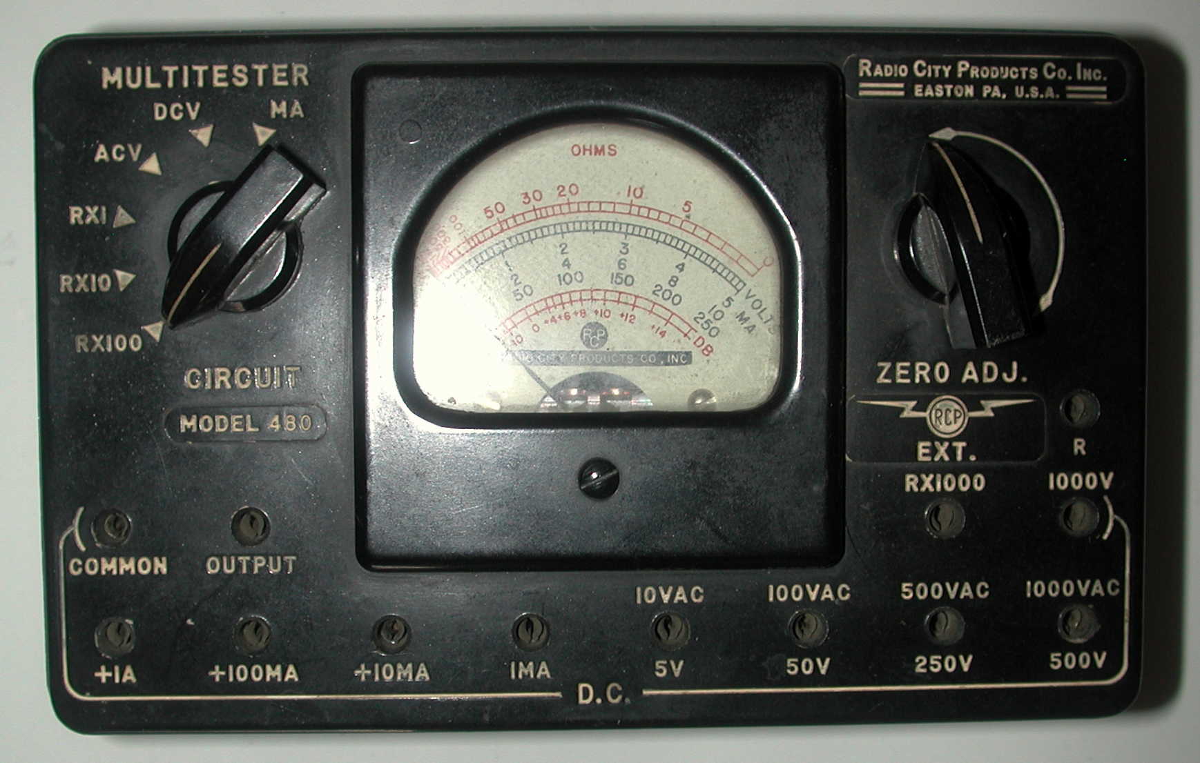 Radio City Products Corp. multitester, Model 480. Measures: