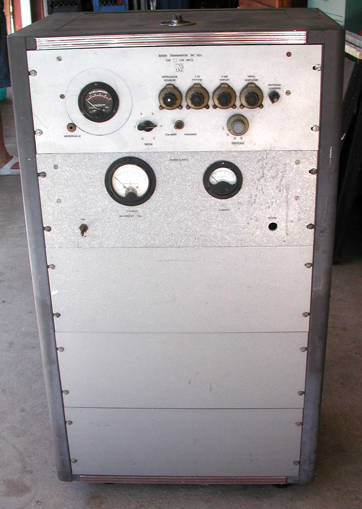 This BC-645 has been converted to the amateur two-meter band. The radio is modified to fit to a 19" rack panel which is mounted in a 4 foot high relay rack. It includes a homebrew power supply rack mounted below the BC-645.