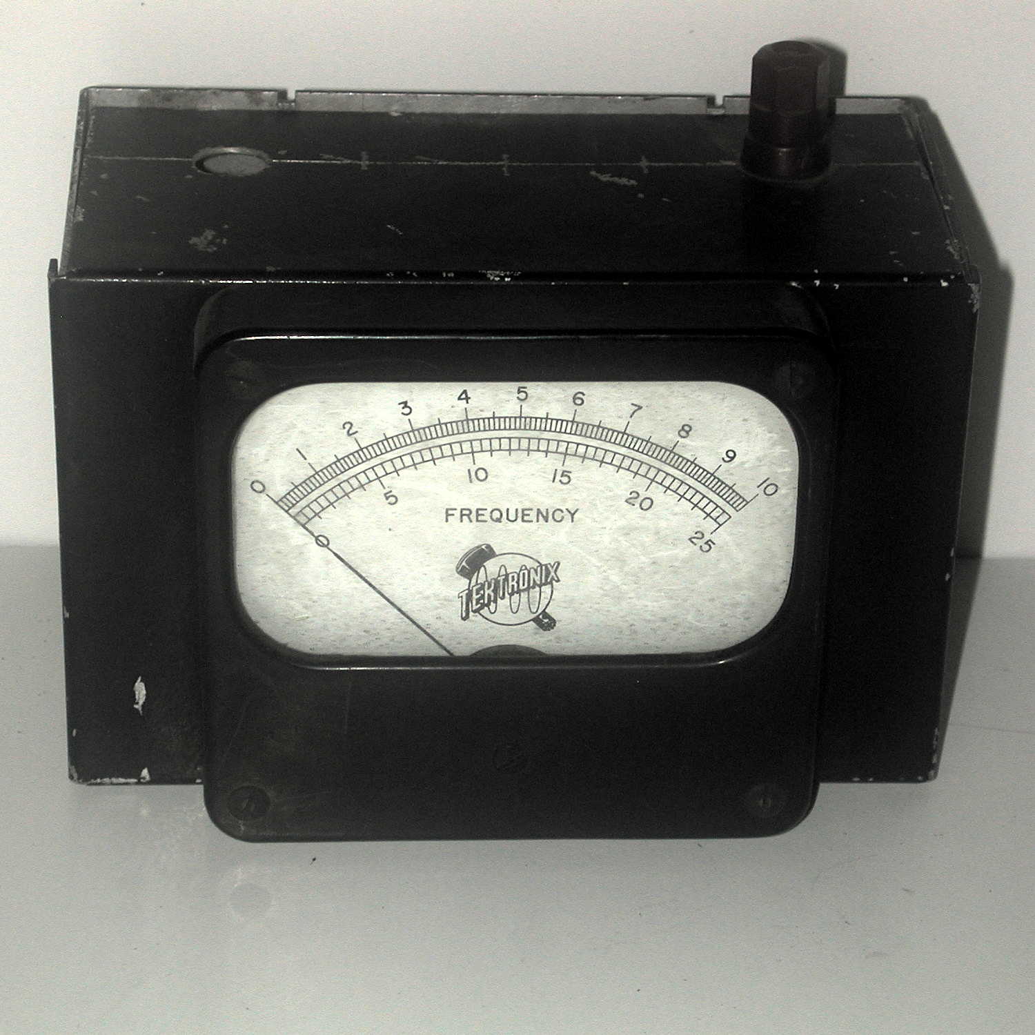 Someone took this meter out of an old Tektronix frequency meter and mounted it in a black metal enclosure. The enclosure is mostly empty except for a coil and binding post. Enclosure cover has numerous holes drilled in it. Meter appears in good condition with a solid zero balance. Meter appears to be 200µA with an internal resistance of about 4 KΩ.