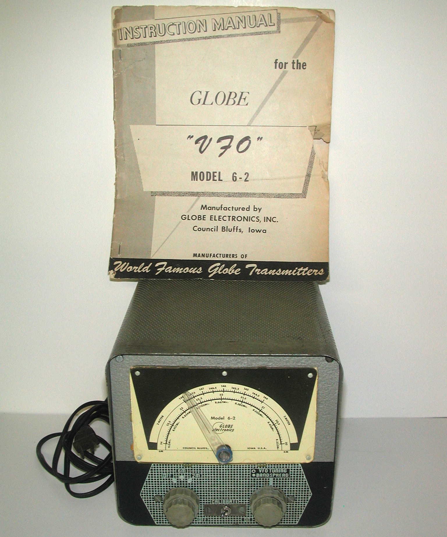 This is a World Radio Labs Globe six and two meter VFO with manual for parts or repair.