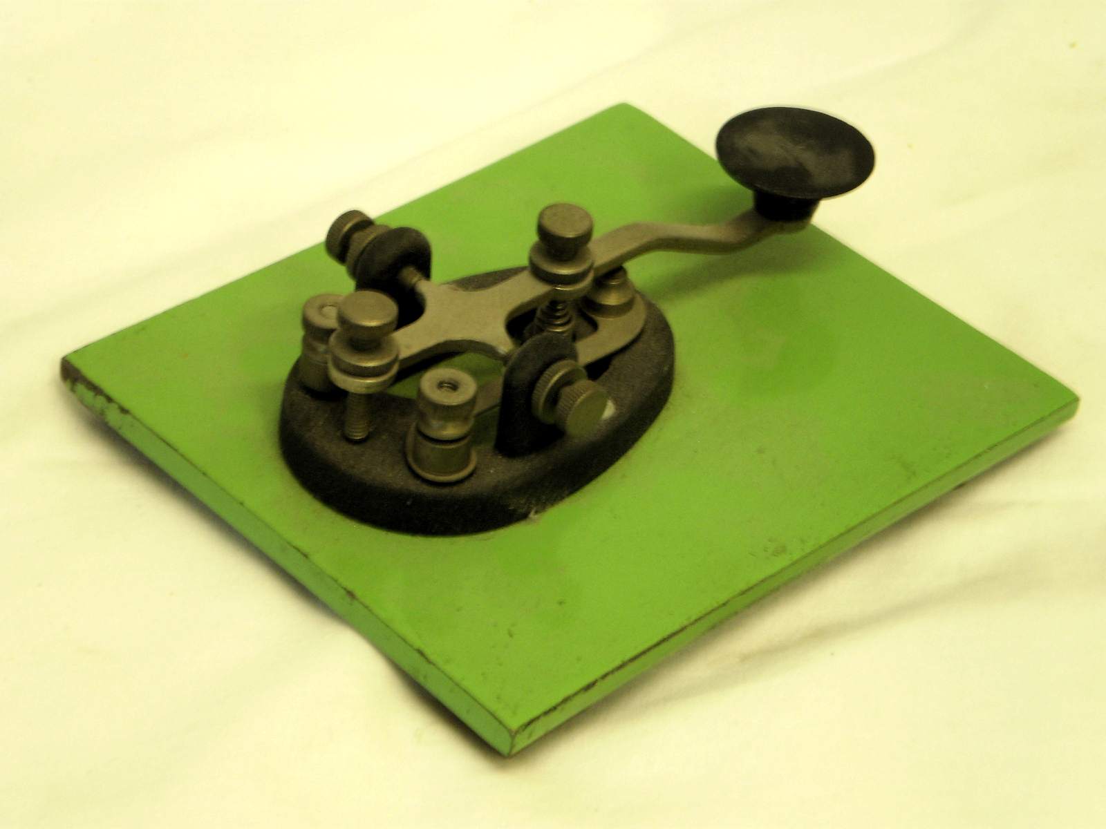 This is a straight telegraph key of unknown manufacturer. It is mounted on a 1/4 inch steel plate with rubber feet base.