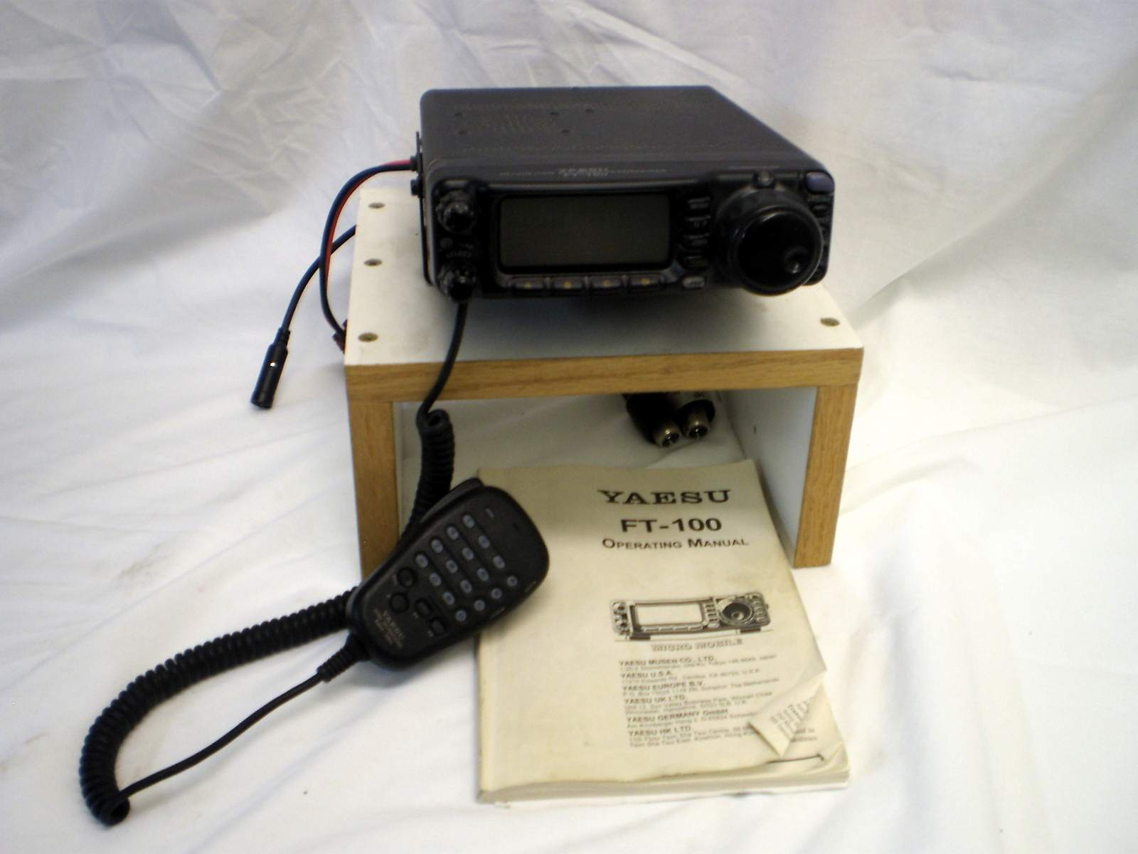 Yaesu FT-100 covers 160M through 6M (100 W) as well as 2 M (50 W) and 70 cm (20 W). It operates on AM (at 1/4 power), CW, LSB, USB, FM and packet (1200 and 9600 baud). It has wide range receive from 100 kHz to 961 MHz (cellular blocked). Required power is 13.8 VDC at 22A max. Unit weighs 6.6 lbs. and measures 6.3"W x 2.2"W x 8"D.