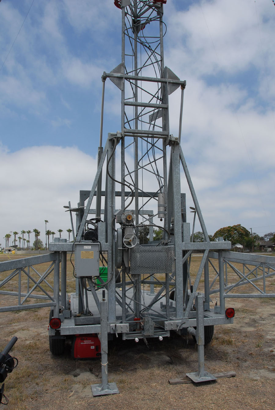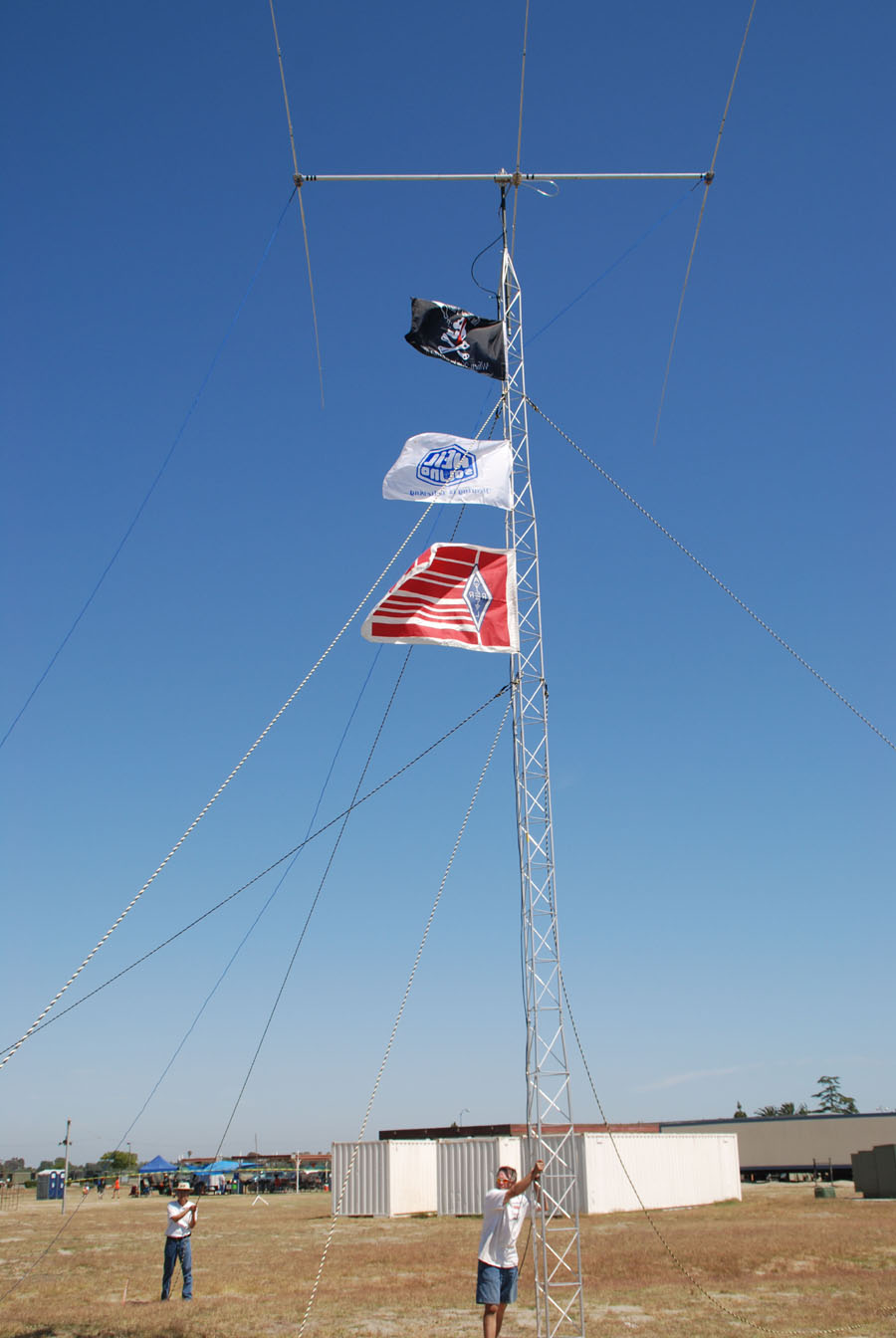 The center-piece for the the OCARC FD towers was a 100-foot self-supporting crank-up tower on a trailer, courtesey of the efforts of Dino-K6RIX.
