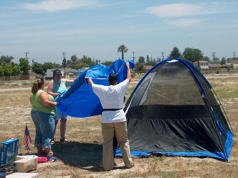 This year OCARC had a dedicated YL station. The 15M75M SSB YL station tent starts to take shape on Friday afternoon. (L-R) Band Captain, Kristin-N6PEQ, Cheryl-KG6KTT, and Beverly-KI6APH.