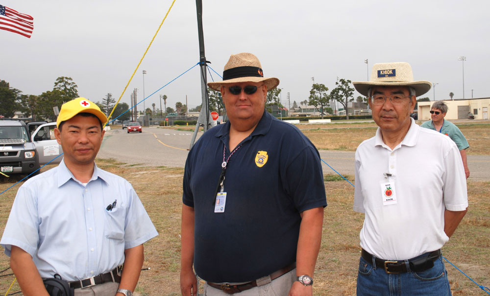 To the left is visitor Katsutoshi-JK1PHL/ AF6CQ who traveled to the US just to see the OCARC FD (he is interested in improving Emergency Preparedness and Ham Public Service in his country). While visiting, Professor Katsutoshi explained that FD is not so wide-spread or so well-organized in Japan. In the middle is Willie N8WP, our FD chairperson, and to his right is Ken Kinoshita - KI6DK (who was a member of OCARC 20 yrs earlier before returning to JA-land and has now recently returned and rejoined the club).