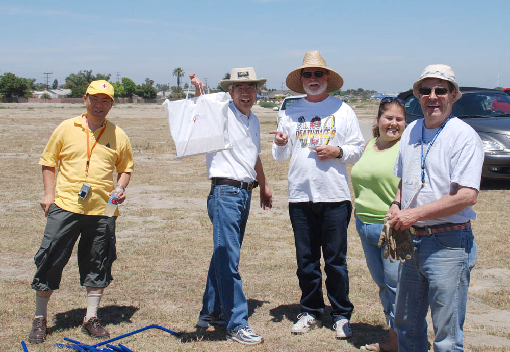 (L-R) Katsutoshi-JK1PHL/AF6CQ, Ken-KI6DK, Rich-KE6WWK, President Kristin-K6PEQ and a happy Bob-AF6C.
