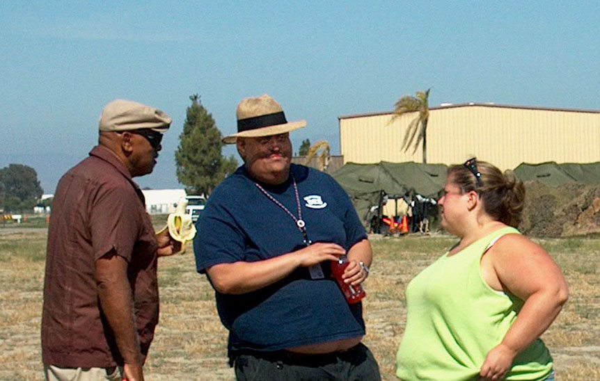 Another visitor to FD was Frank-WF1A (L), who travels in his motorhome and is a long-time friend of Willie-N8WP (C) and certainly a friend of the OCARC. The OCARC President, Kristin-K6PEQ, joins in on the discussions.