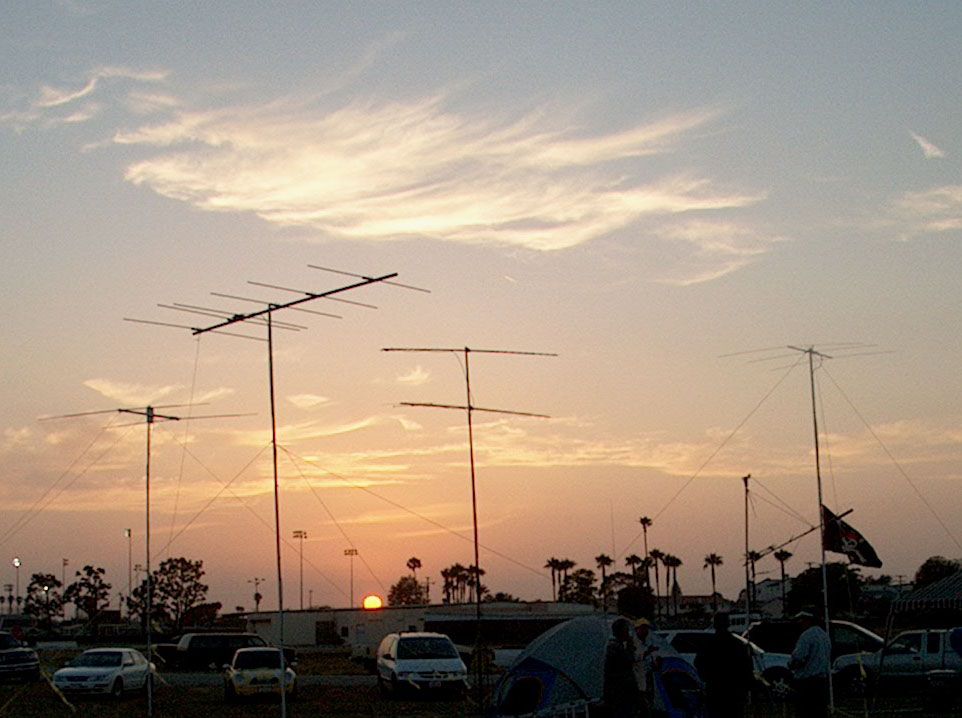 At the end of the day on Friday, after antenna set ups are completed, the sun sets over the Pacific Ocean. The VHF/UHF antenna farm is silhouetted in this beautiful California sunset.