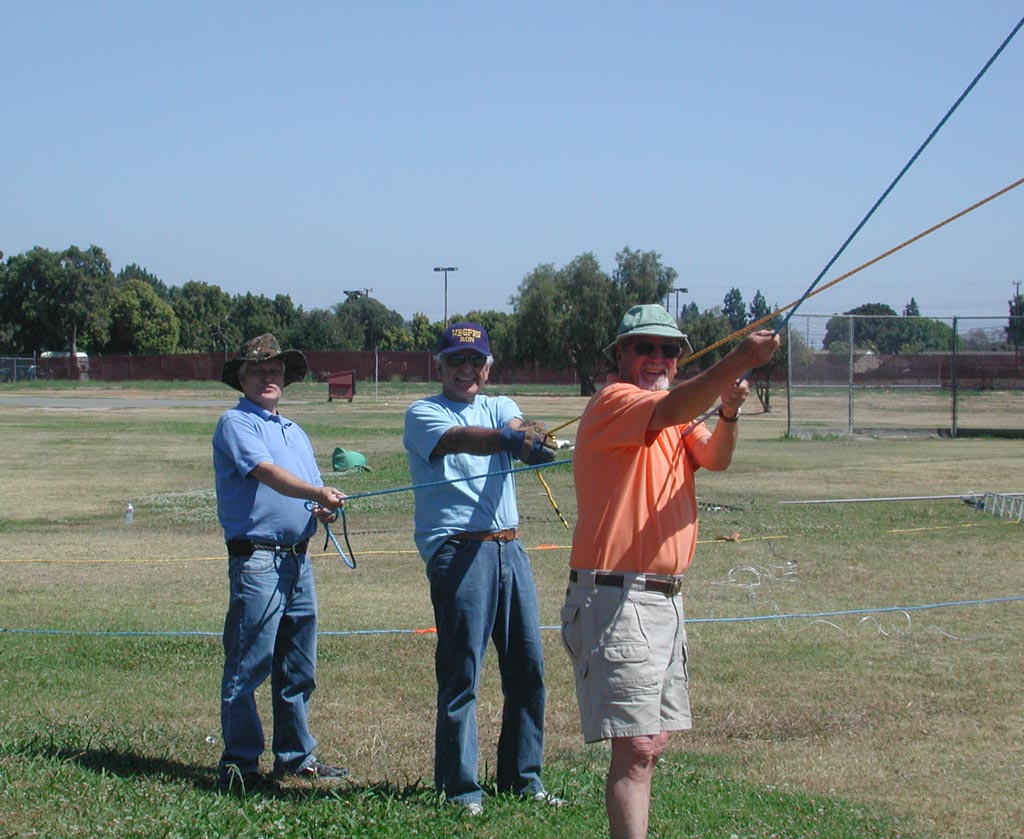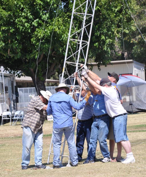 PHN ower into position (L-R) Nicholas AF6CF, Ron WB6FRV, and Bruno (no call) |