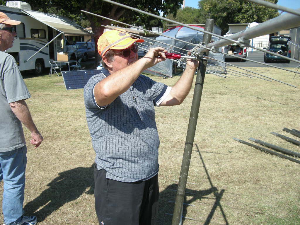 puts the finishing touches to a 2M Yagi that is mounted on the club's set of