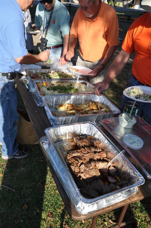 the crew help themselves to a steak dinner. This year, the tri-tip steak slices and