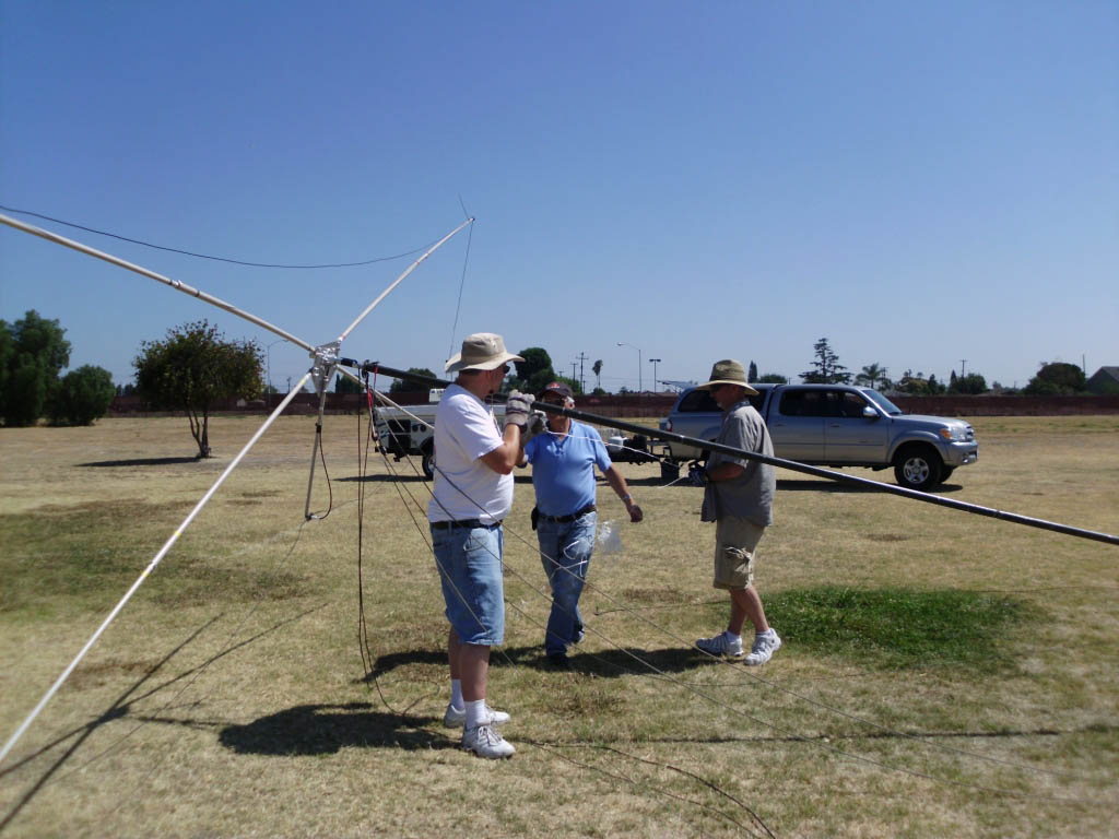 to be raised into position. (L-R) Tim N6GP, Dee N8UZE and Doug W6FKX |