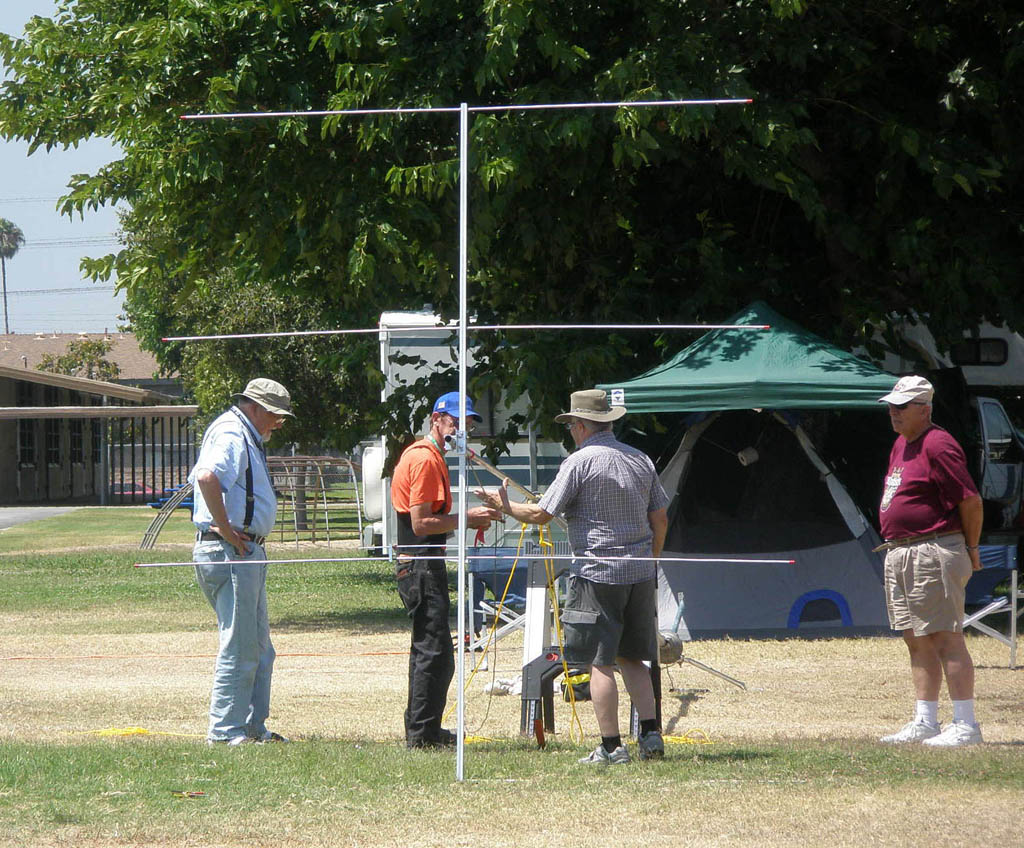 6M activities at FD. Here a team assembles the 4-ele 6M beam (L-R) Doug N6UX, Jay, Gene