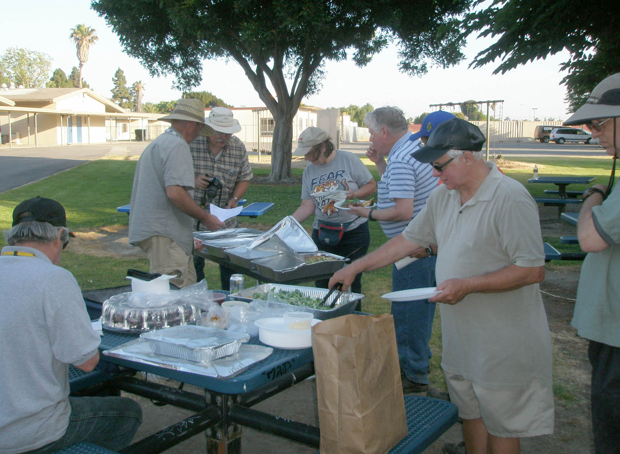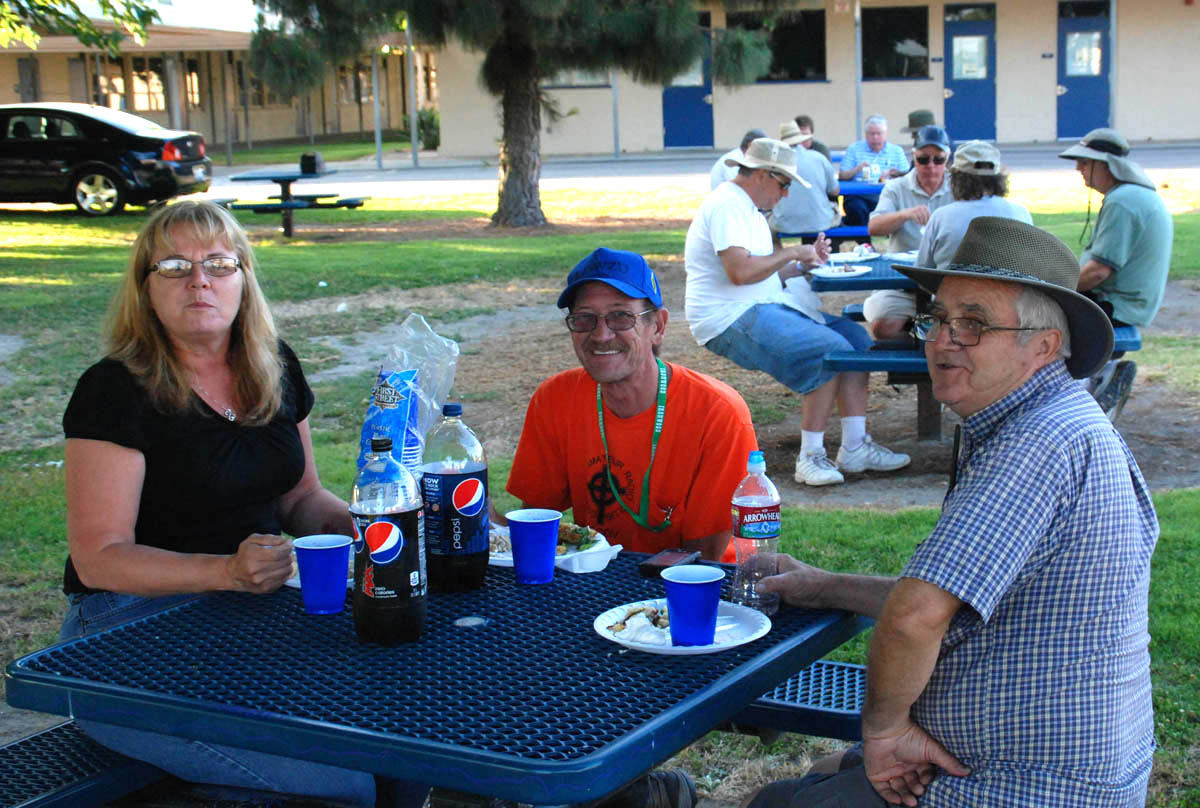 "el Presidente" Paul-W6GMU, Jay-KI6WZU (mostly hidden in light blue hat), Gordon