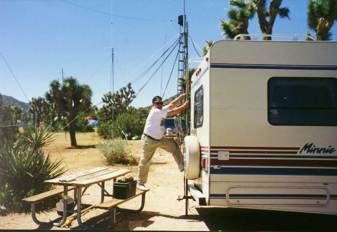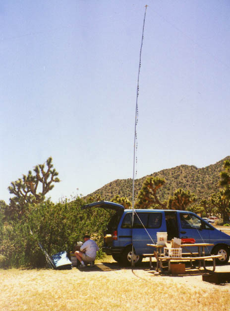 Larry, K6LDC sets up the 240 foot long-wire loop