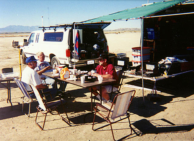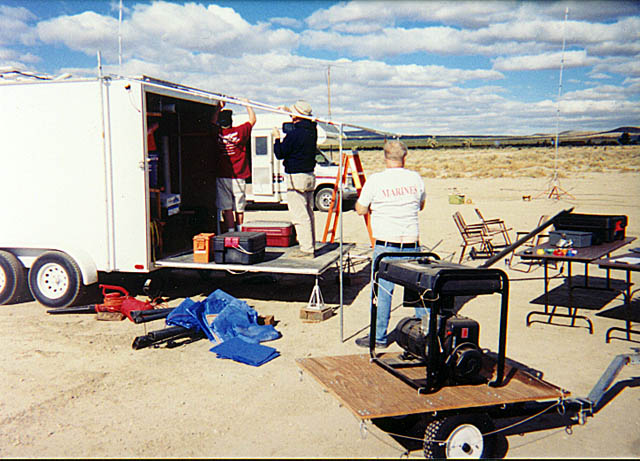 Setting up the generator, antennae, and the shade: Steve, KE6NAH, Tom, WA6PFA, and Frank, WA6VKZ.