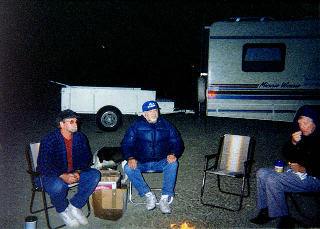 Gathering around the campfire: Steve, KE6NAH; Larry, K6LDC; and Bud, WA6VPP.