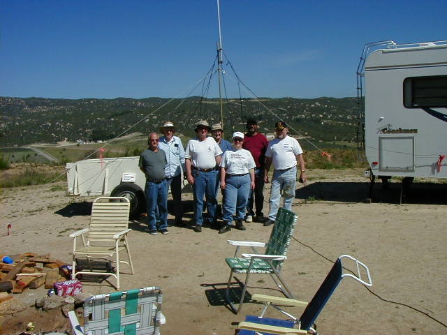 The crew assemble before teardown. L to R: Larry, K6VDP; Bud, WA6VPP; Jim, KE6UCH; Tom, WA6PFA; Cory KE6WIU; Art, KE6WOX; and Larry, K6LDC.