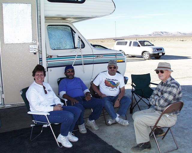 Charmaine-KF6YOL in the middle of the dry lake. Her vertical antenna was fastened to