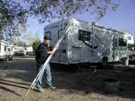 Art - KE6WOX in front of Larry - K6LDC's motorhome