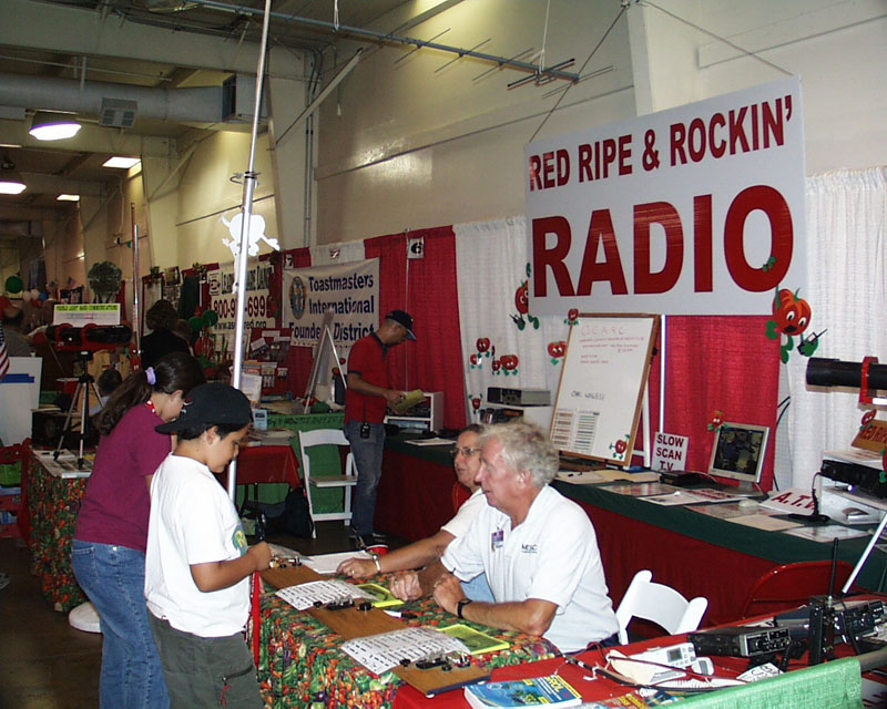 Suzie-N6GLF explain Morse Code to some young visitors. Carl-WA6BSV is in the