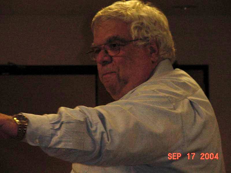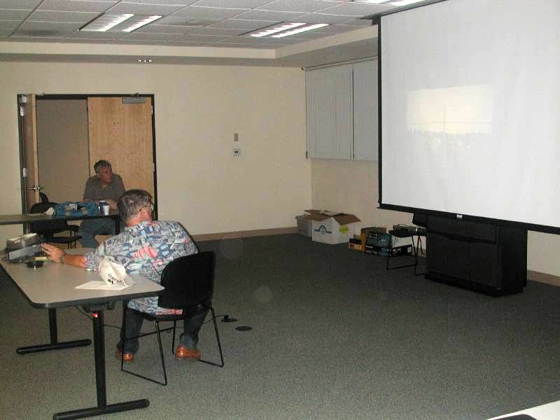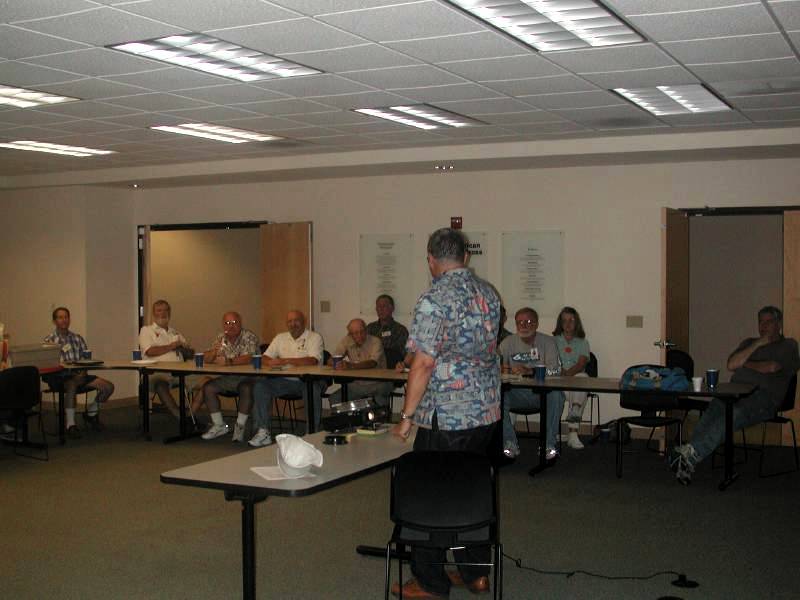 looks on; Ken-W6HHC presents historic Field Day slides;